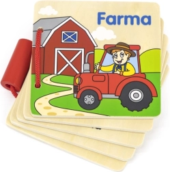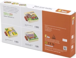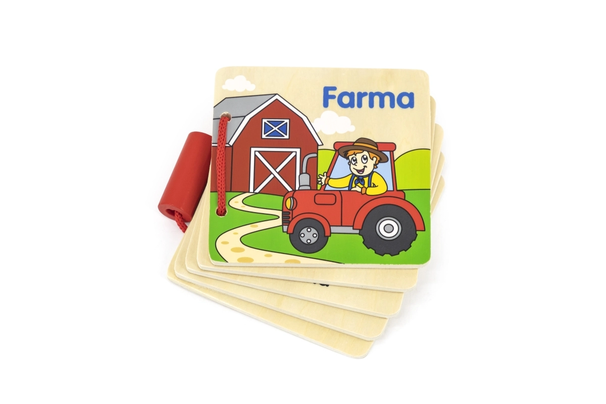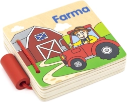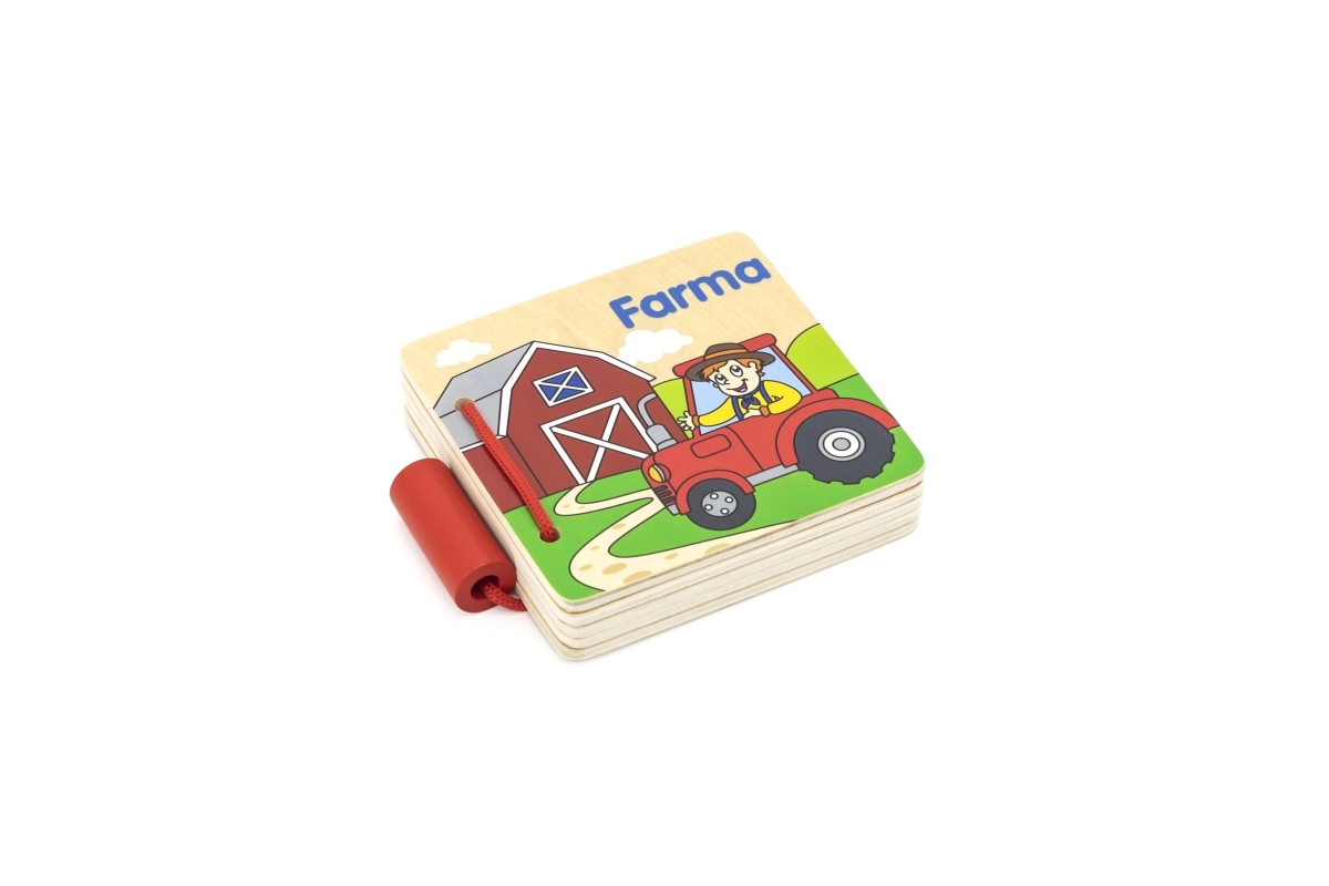 Тази дървена книжка с тема ферма е чудесен помощник за първо запознаване на децата със света на животните. Издръжливите дървени страници с ясни илюстрации и чешки надписи помагат за развитие на фината моторика, речниковия запас и концентрацията.