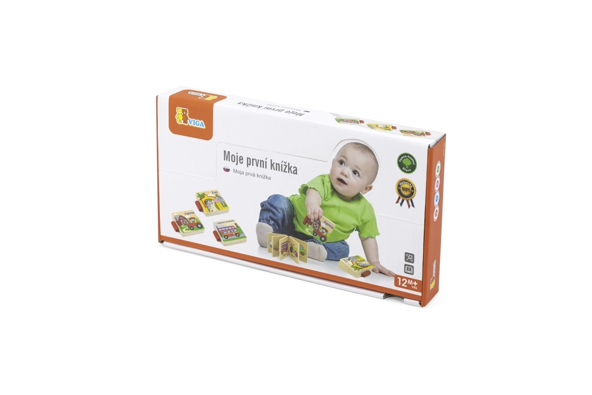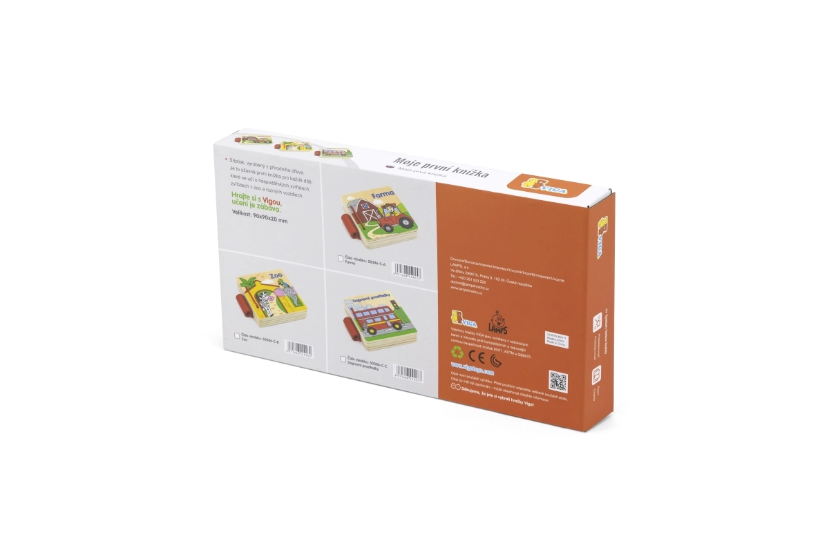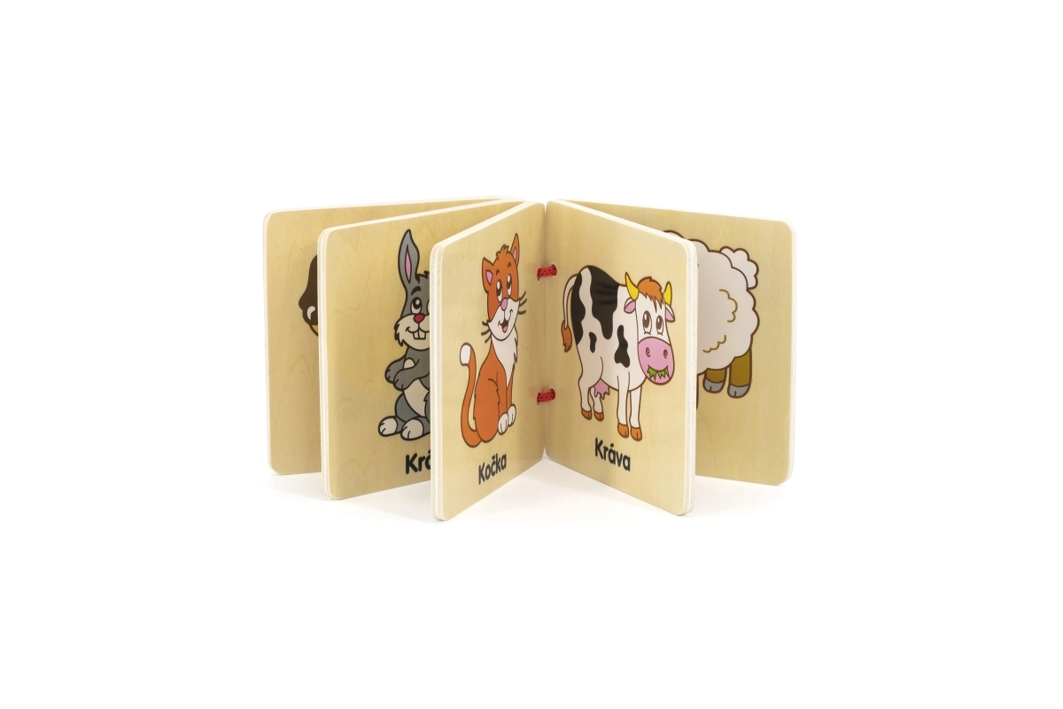Открийте света на фермата с тази сладка дървена книжка за най-малките. Тя предлага здрави дървени страници, опростени картинки на животни и текст на чешки език, които подпомагат ранното развитие на речта, моториката и познанието. Идеална от 12 месеца за безопасно и забавно учене.
