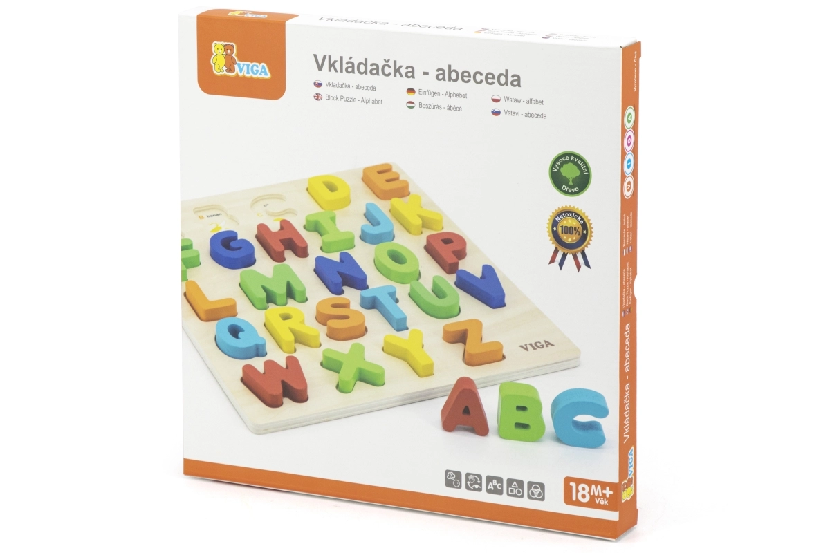 Открийте магията на ученето с тази прекрасна дървена вложка, съдържаща общо 26 части, които представят всички букви от чешката азбука.