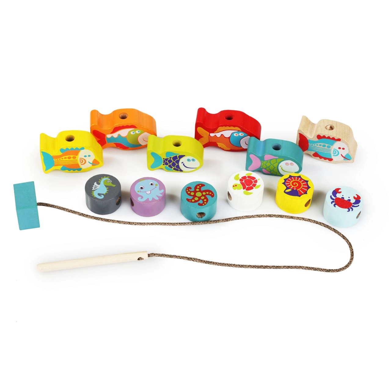 Открийте магията на играта с дървени елементи за нанизване, които помагат за развиване на детската фина моторика, търпение и памет. Комплектът съдържа: