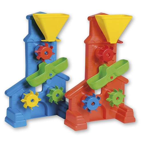 Пъстра мелничка за пясък и вода с височина 42 cm, изработена от качествени пластмаси в Италия, ще зарадва най-малките изследователи. Благодарение на трите лопатъчни колела, подвижното плъзгачe за регулиране на потока и широката стабилна основа развива фината моторика и сетивното възприятие. Подходящо за деца от 12 месеца.