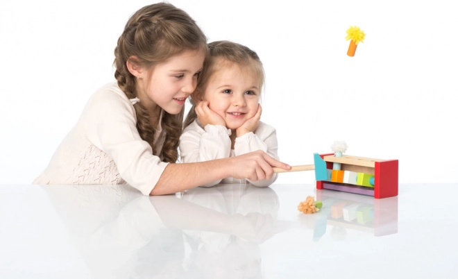 Всеки удар с чукчето активира механизма и клоунът изскача. Децата тренират наблюдателност, прецизност и търпение, като едновременно разбират принципа на причина и следствие.