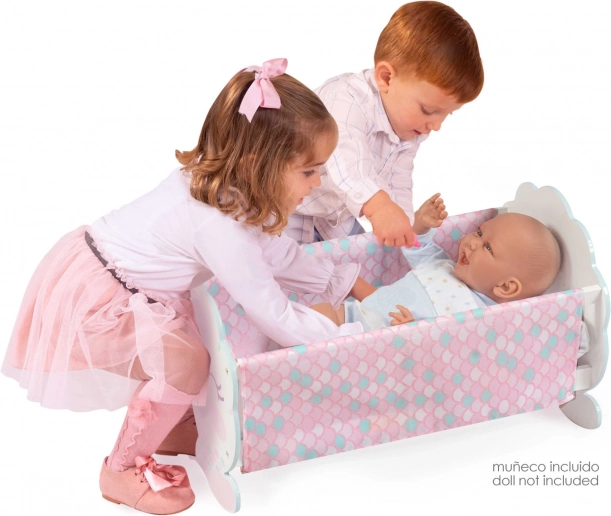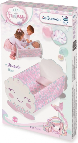 Дървената люлка за кукли от колекция OCEAN FANTASY се отличава с елегантна визия с дъгови ефекти, блестящи детайли и табла във формата на морска мида. Благодарение на здравата изработка от MDF и масивна дървесина люлката е стабилна и безопасна, идеална за ежедневна игра на деца от 3 години.