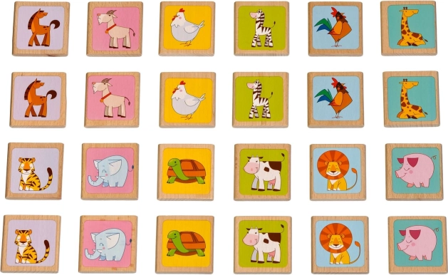 Дървеното мемори Животни от марката LUCY & LEO предлага 12 двойки цветни картинки на любими животни. Всяка карта е с удобен размер, добре пасва в детската ръка и благодарение на качественото дърво издържа и на честа игра. Идеално за първи игри за памет, общи моменти с родители и самостоятелно откриване.