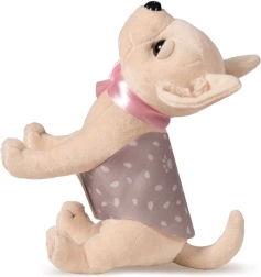 Кученцето има дрешка с велкро закопчаване и декоративна панделка под вратлето, което добавя към общата атрактивност. Подходящо е за деца от 3 години. Използваните материали включват плюш, текстил и пластмаса, което прави играчката едновременно приятна на допир и лесна за пране на 30°C.