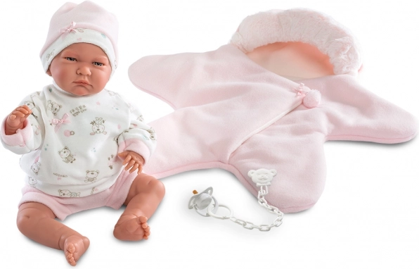 Дрешки за кукла NEW BORN 40–42 см – розов комплект със звезден флийс Llorens