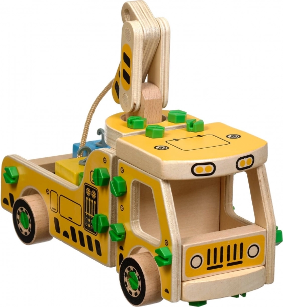 Влезте в света на строителните умения с дървения конструкторски комплект автокран от Lucy & Leo. Този комплект е идеален за малки строители, които искат да развиват своите моторни способности и творчество с приятни на допир дървени елементи.