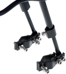 Монтажът и демонтажът са въпрос на минути благодарение на здравата скоба/бързозатягаща яка и включения монтажен комплект. Страничните защити предпазват чантите от спиците, а отзад има червен отражател за по-добра видимост по здрач. В комплекта ще намерите корпус с платформа, странични рамена, телескопични подпори, винтове, предпазни гумени вложки и отражател.
