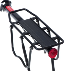 Здравите скоби и винтови съединения осигуряват сигурно фиксиране. Багажникът се поставя и сваля лесно, когато е необходимо да го преместите на друг велосипед.