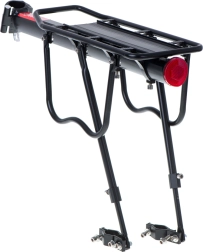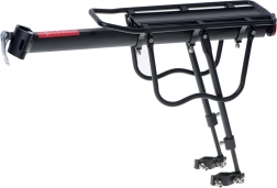 Насладете се на повече място за екипировка и пазаруване. Този алуминиев заден багажник за велосипед предлага товароносимост 25 kg и ниско тегло. Телескопичните подпори и плъзгащата се платформа позволяват прецизно настройване според рамката. Съвместим със седалки ø 28,6 mm и 27,2 mm, така че пасва на широка гама велосипеди без нужда от специални адаптери.