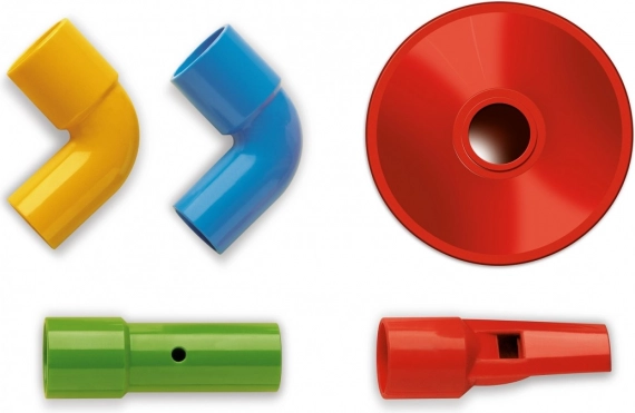 Благодарение на възможността да се сглобяват флейти, саксофони и тромпети, тази играчка стимулира творчеството и играта на музикални инструменти.