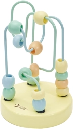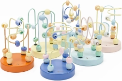 По металните пръти има красиви дървени мъниста, които децата могат свободно да преместват, като така тренират прецизността на движенията на пръстите и ръцете.