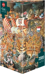 Пъзел Битката при Трафалгар от известния карикатурист Михаел Риба ще ви пренесе в исторически моменти с прекрасна графика. Опаковката съдържа 2000 части и необичайна тристранна кутия с плакат като образец за подреждане.