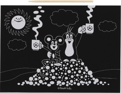 Насладете се на креативно забавление със скрапинг картина с мотив Къртичето и неговите приятели. С помощта на дървена шпатулка се разкриват скритите цветни слоеве.