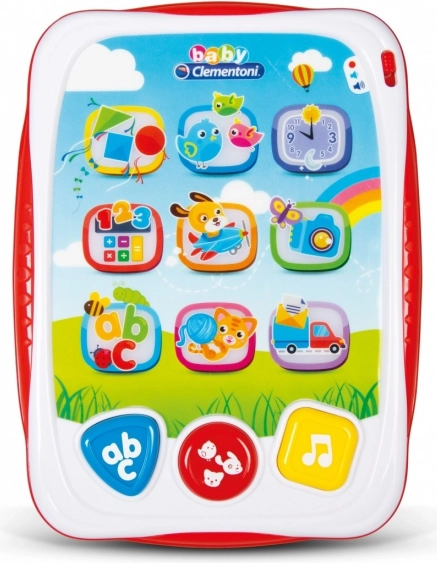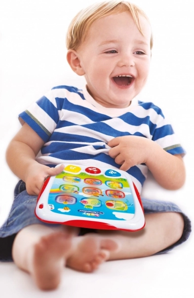 Този цветен и издръжлив таблет е идеална първа образователна играчка за най-малките. Големите бутони, ясните иконки и светлинните ефекти насърчават интуитивното управление и концентрацията. Децата естествено се учат да разпознават букви, цифри, форми и цветове, докато се наслаждават на весели мелодии и звуци.