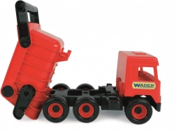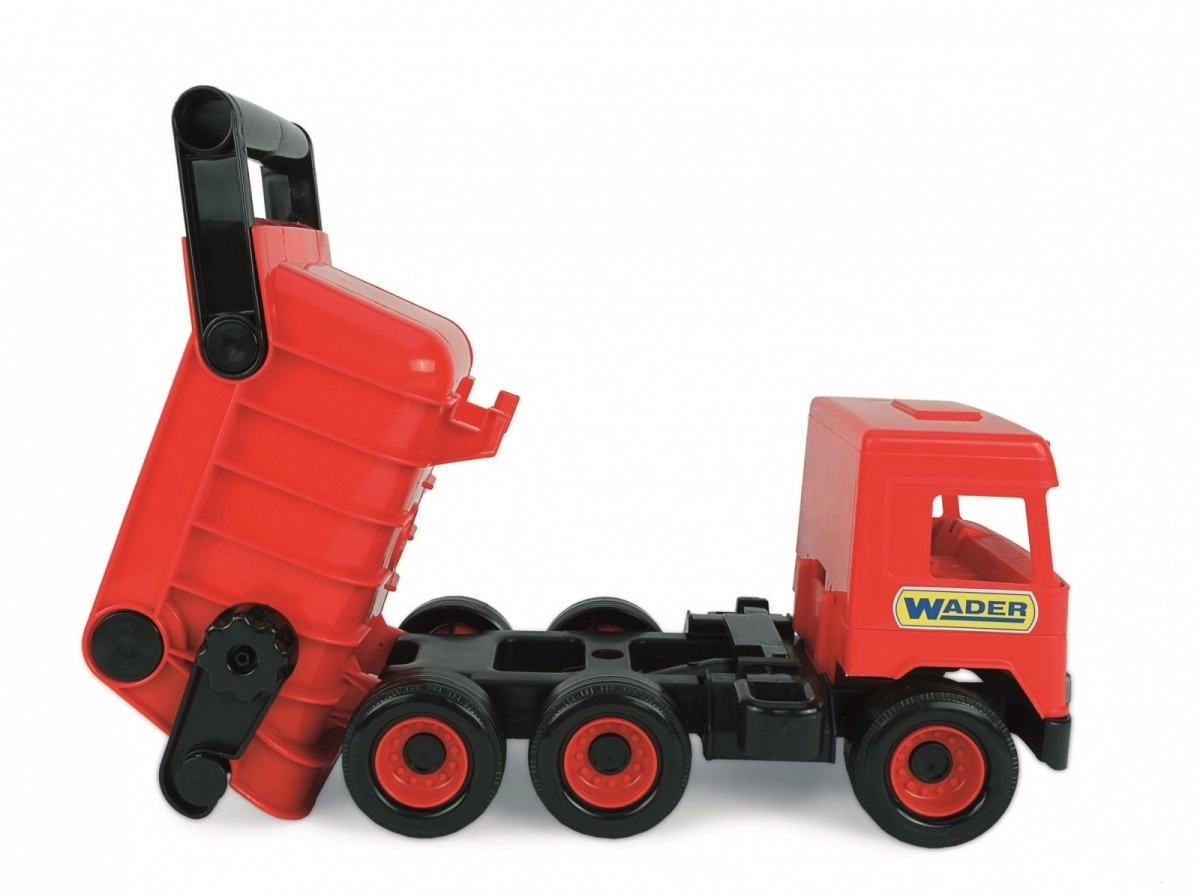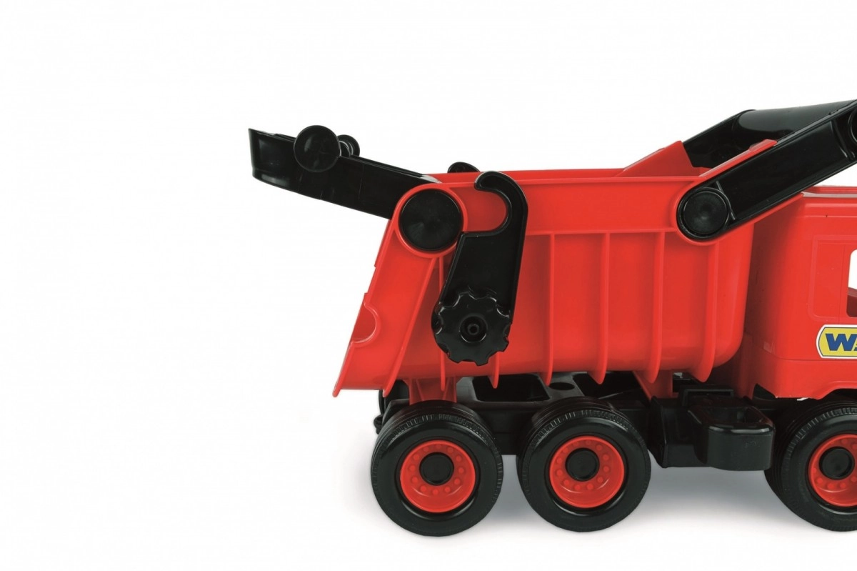 Червеният самосвал Wader Middle Truck ще зарадва всяко дете, което обича приключенията. Този качествен пластмасов товарен автомобил има шест колела, което му осигурява стабилност и издръжливост дори при интензивни игри.