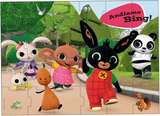 Подовият пъзел с любимия герой BING ще зарадва всяко дете. Благодарение на големите, издръжливи части се подрежда отлично на пода и подпомага фината моторика, концентрацията и разпознаването на форми и цветове.