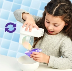 Запознайте се с розовото фламинго, което ще разсмее всяко дете. Обожава да бъде хранено със специалния пясък Aqua, след което трябва бързо да „отскочи“ – това забавно „акане“ е безопасно, а пясъкът може да се използва повторно. Освен това фламингото обича да си бъбри, повтаря това, което чува, и показва пеене и танц.