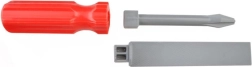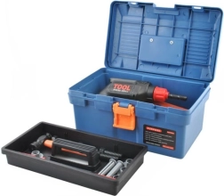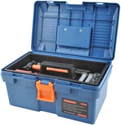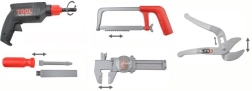- куфарче, ръчна бормашина, чук, кръстата отвертка, права отвертка, винтове и гайки, ръчен трион, регулируем гаечен ключ, звездогаечен ключ, вложков ключ, плосък гаечен ключ, шублер, шпатула, пила (сменяем накрайник), нивелир, ъгломери, свързващи елементи с отвори