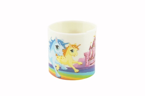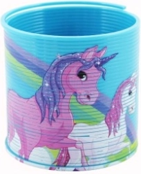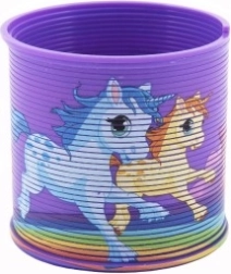 Тази цветна спираловидна пружина с сладки еднорози е класика, която никога не омръзва. Лесно се разтяга, вълнува се плавно и благодарение на качествената пластмаса е безопасна за ежедневна игра. Страхотно забавлява у дома, по време на път и на детски празненства.