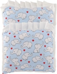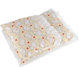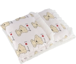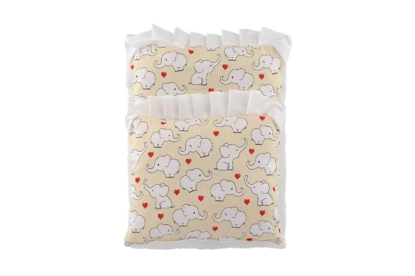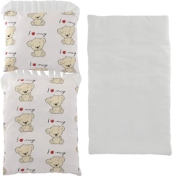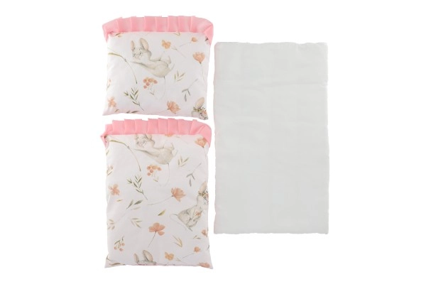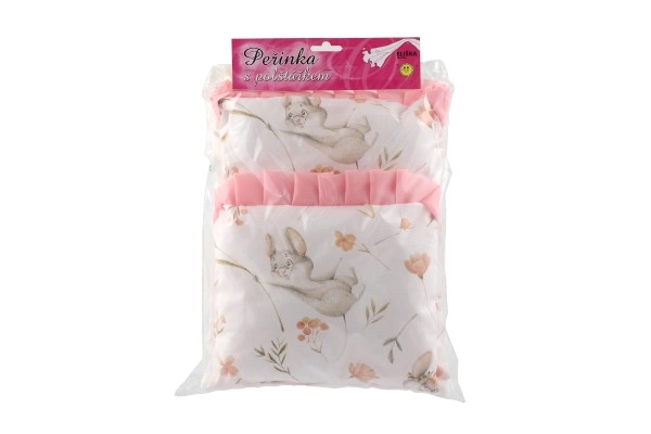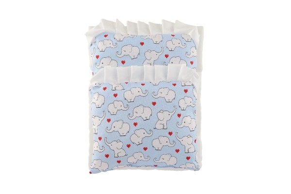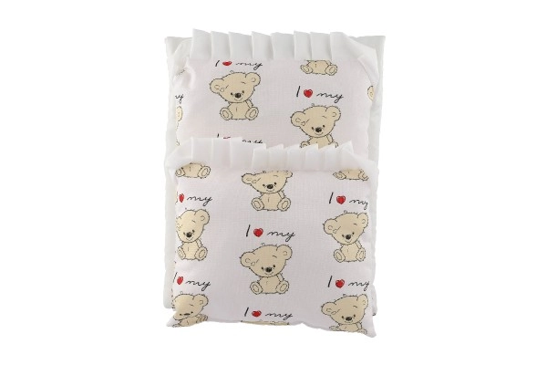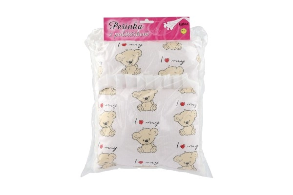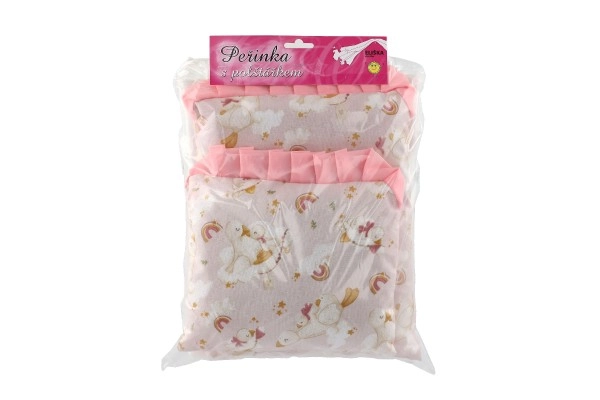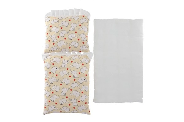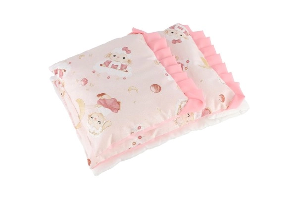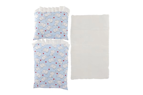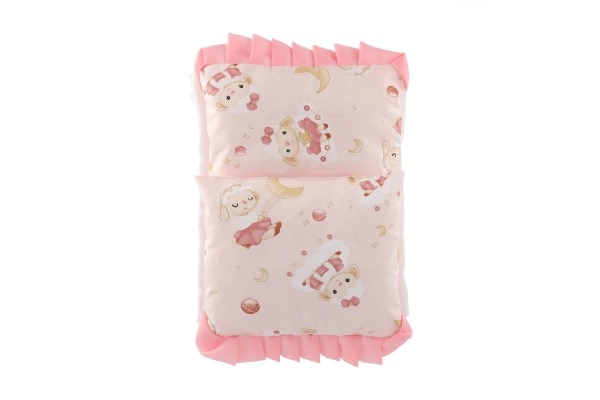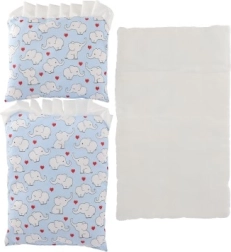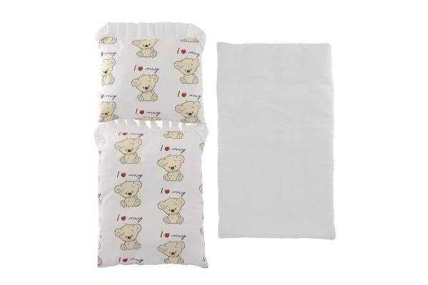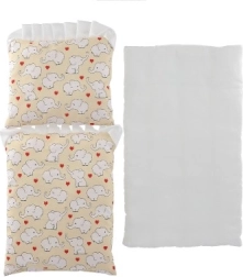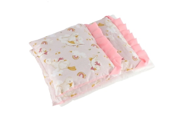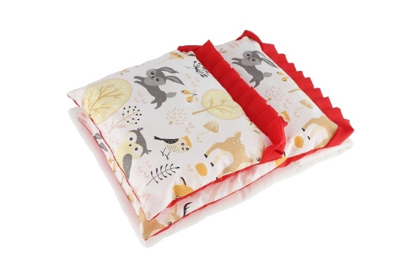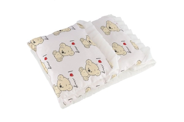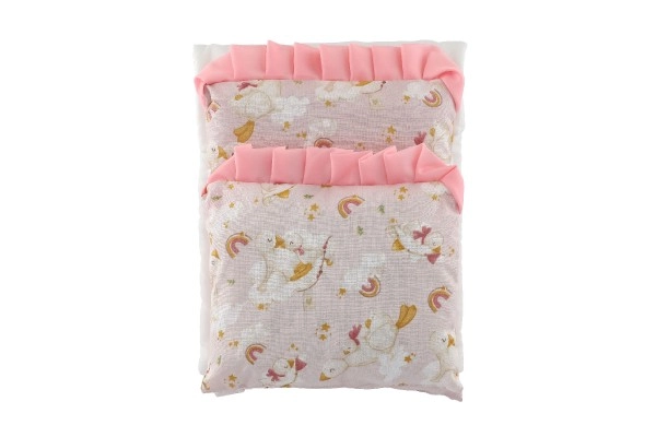 Възглавничка 23 × 28 см, подложка 50 × 30 см, завивка 35 × 28 см – чудесно пасват на колички и легълца за кукли.