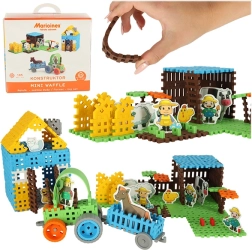Отправете се към селската ферма! Комплектът съдържа компоненти за създаване на собствена ферма, включително трактор с ремарке и фигурки на фермери с животни като кон, крава и кокошка. Децата ще научат за селския живот, развиват въображението и моторните си умения.