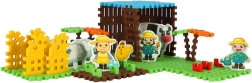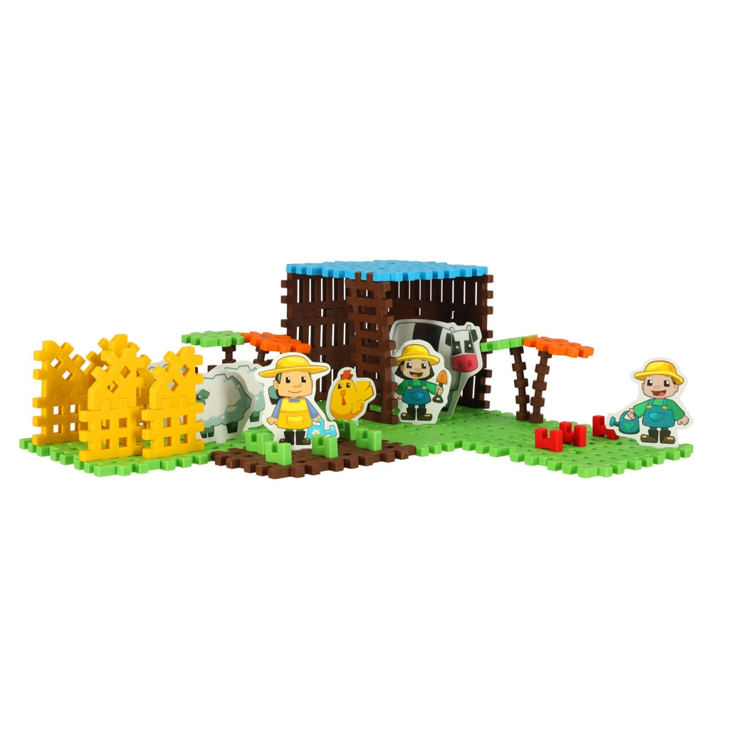 Сглобете собствена ферма с фигурки на фермери и животни, включително кон, крава и кокошка. С този конструктор децата развиват въображението и практическите си умения.