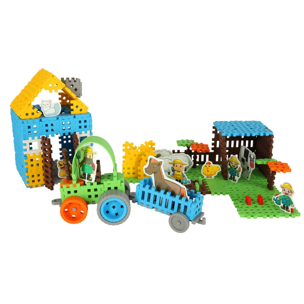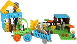 Създаването и строенето на различни структури развиват логическото мислене и носят забавление. Комплектът включва фермерски трактор и разнообразни аксесоари, които ще занимават децата дълго време.