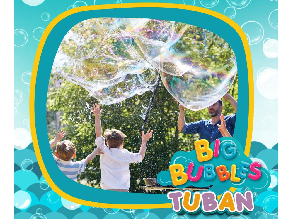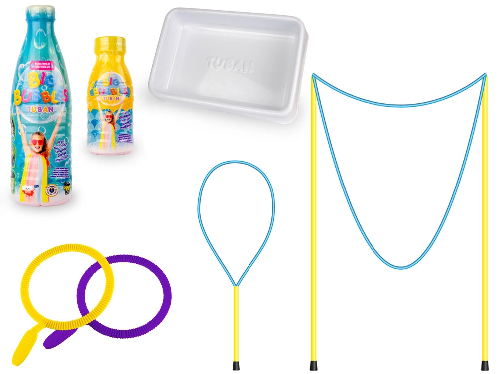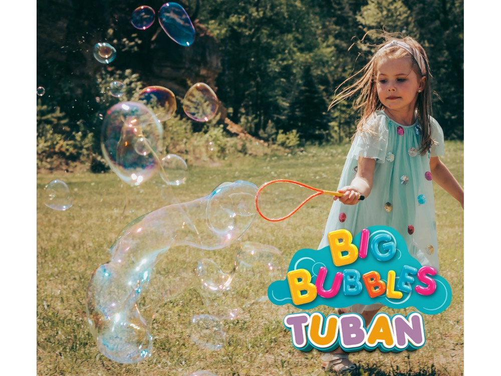 Употребата е лесна: потопете инструмента в разтвора TUBAN и с леки движения създавайте гигантски балони. Дъговите балони и тунели със сигурност ще впечатлят всеки малък откривател. Игра, пълна със смях и радост, е гарантирана.
