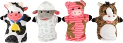 Куклите за ръка „Домашна ферма“ дават възможност за създаване на собствени приказки и истории. Този комплект включва четири различни животни от фермата, които ще обогатят всяко театрално представление. Изработени са от безопасен материал, който е мек и приятен на допир.