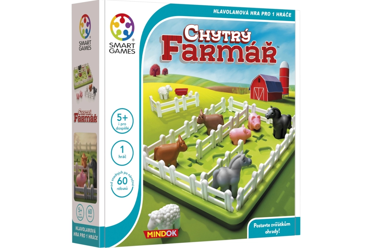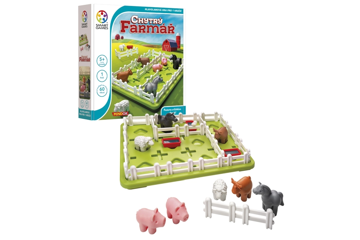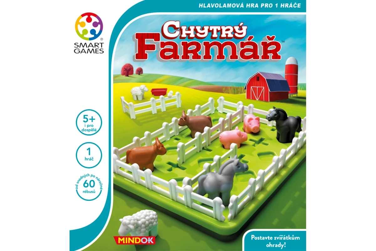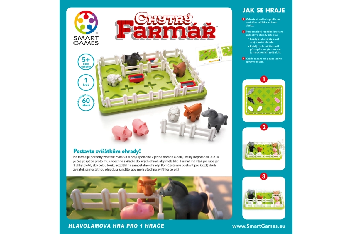 Въведете ред във фермата с логическата игра Умният фермер от SMART. С помощта само на три огради разделете ливадата така, че всеки вид животни да има свой собствен заграден двор и едновременно с това достъп до вода. Идеална за деца от 5 години, които с тази игра тренират логическо мислене, пространствено въображение и решаване на проблеми.