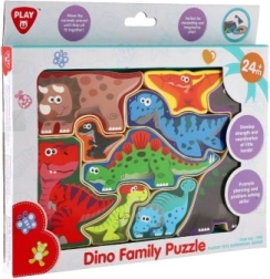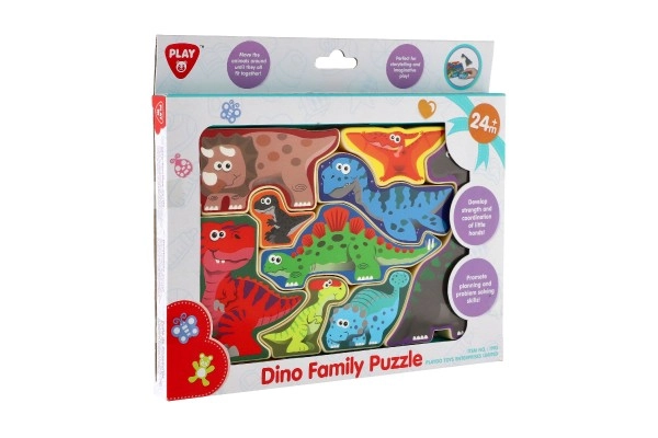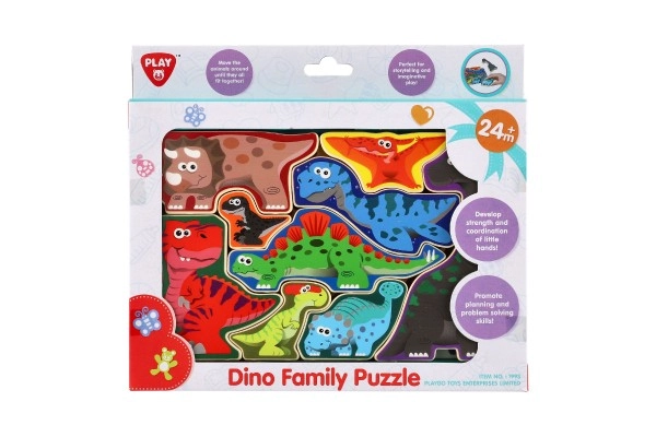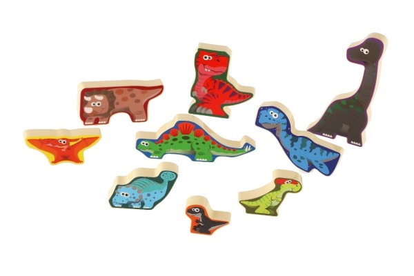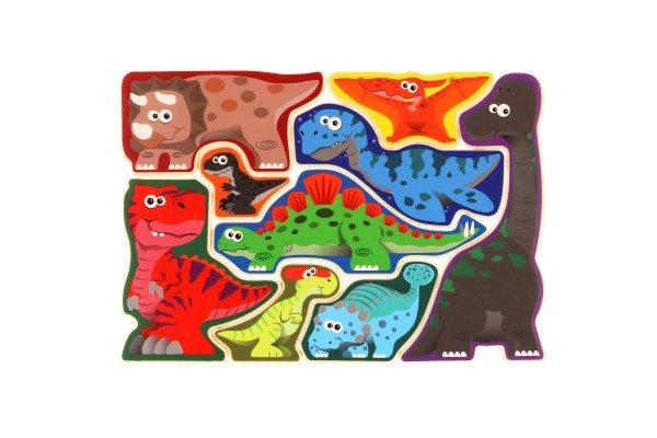 Тази висококачествена дървена вкладайка с динозаври подпомага ранното развитие на децата по игрив начин. Благодарение на различните форми и цветове децата се учат да разпознават форми и цветове и подобряват пространственото въображение. Частите са пригодени за детски ръчички и се хващат лесно.