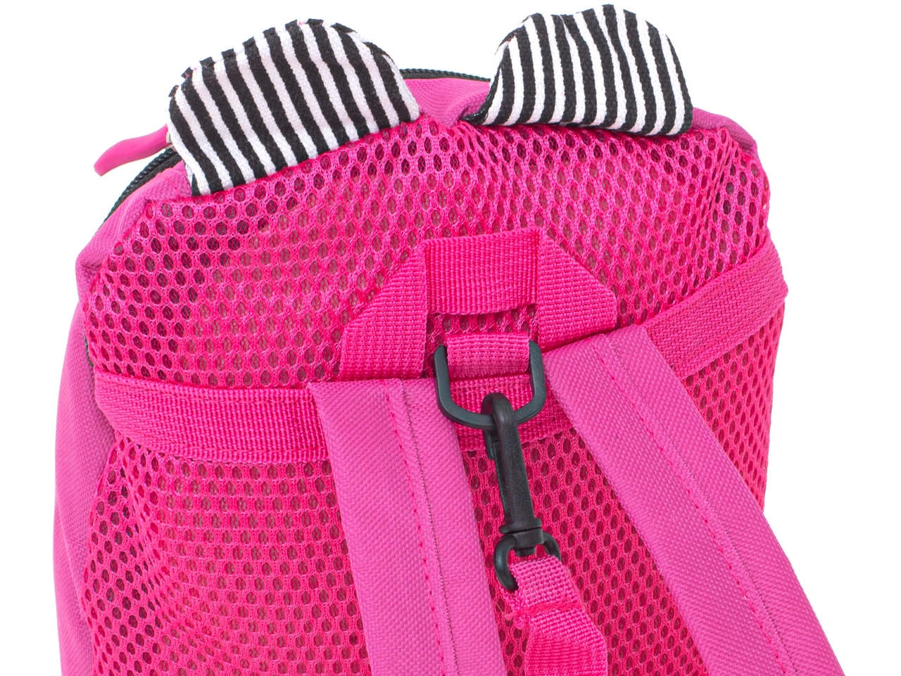 Приятелското лице на мечето и райираните ушички мотивират децата да носят раничката и да се грижат за своите вещи.