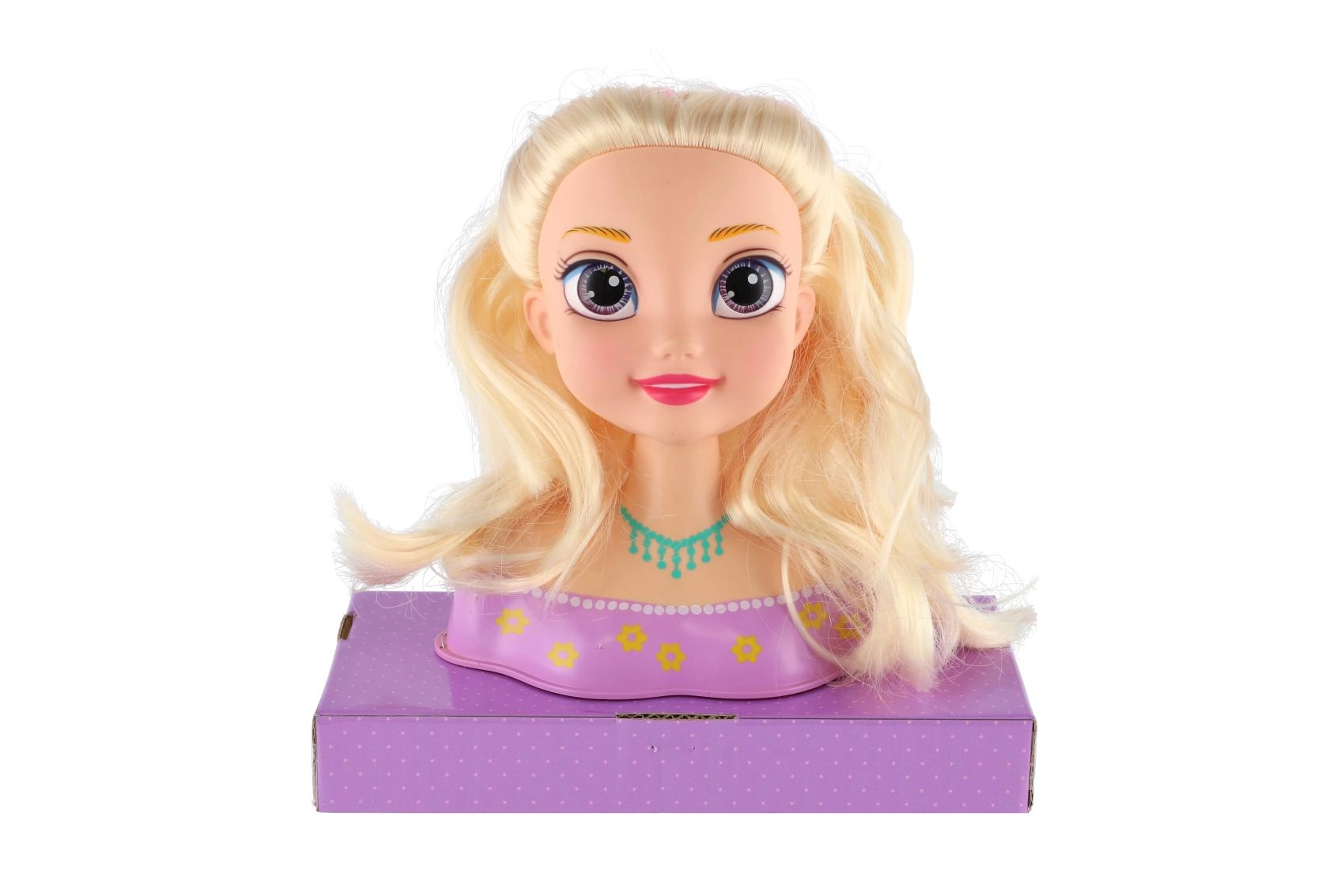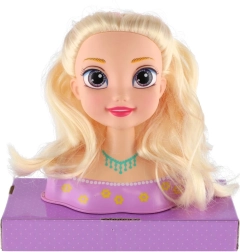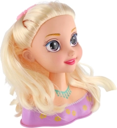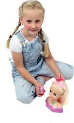 Изпълнете детската мечта за собствен фризьорски салон с тази глава за прически с гъста руса коса. Благодарение на богатото оборудване лесно ще създадете опашка, френска плитка и много плитчици. Качествената коса запазва форма, а аксесоарите като огледалце, фиби и гребенче улесняват всяка промяна. Идеалната творческа игра за деца от 3 години.