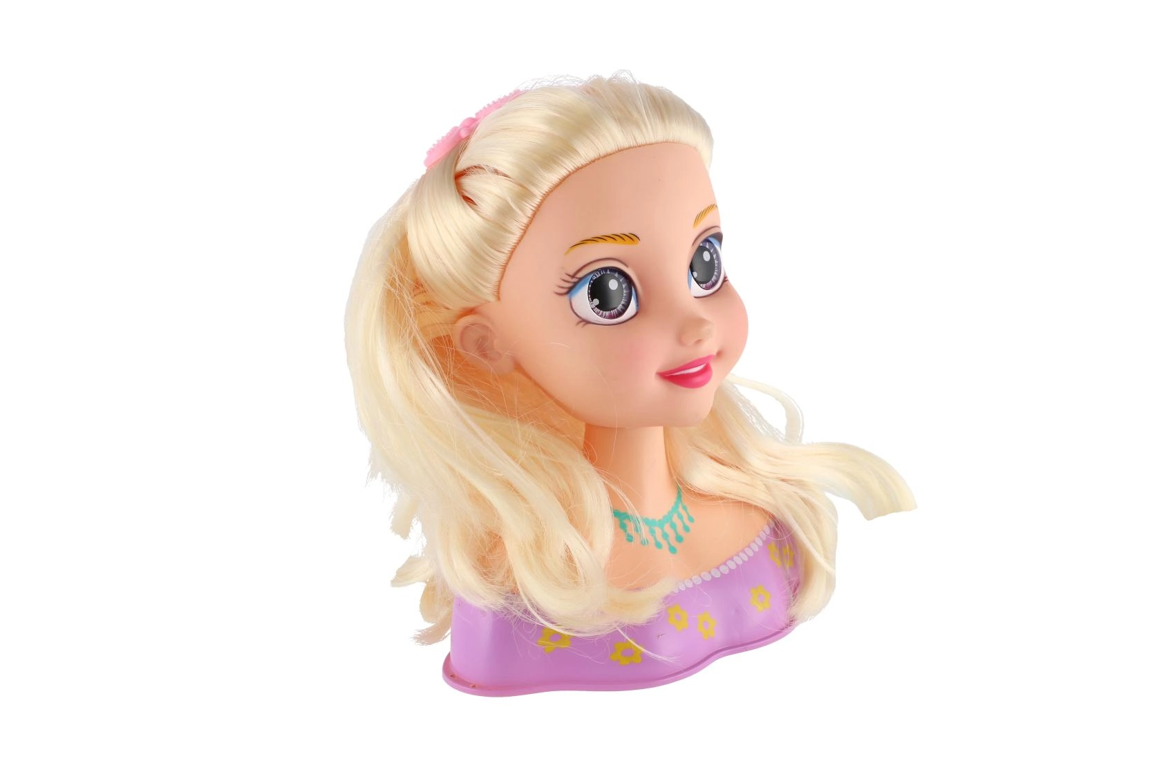 Глава за прически блондинка с аксесоари е перфектен избор за малки стилистки, които обичат прическите и креативната игра. Гъстата, качествена коса се разресва и оформя лесно, така че ще направите елегантни опашки, френски сплетени плитки и множество дребни плитчици. Част от комплекта са практични аксесоари, които помагат при всяка промяна.