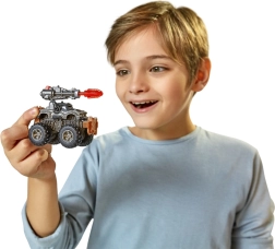 Лесен за сглобяване трак с масивни гуми, детайлна каросерия и функционален ланчер за битки и каскадни номера.