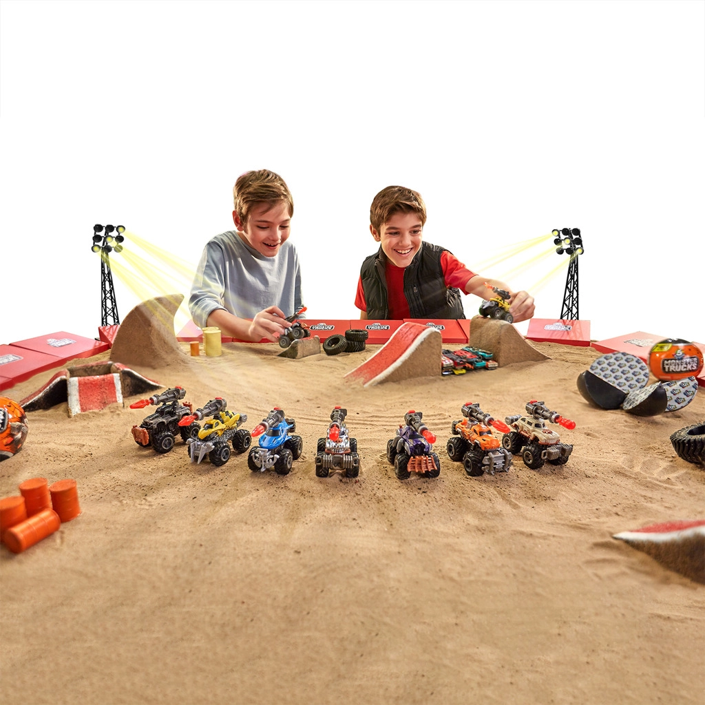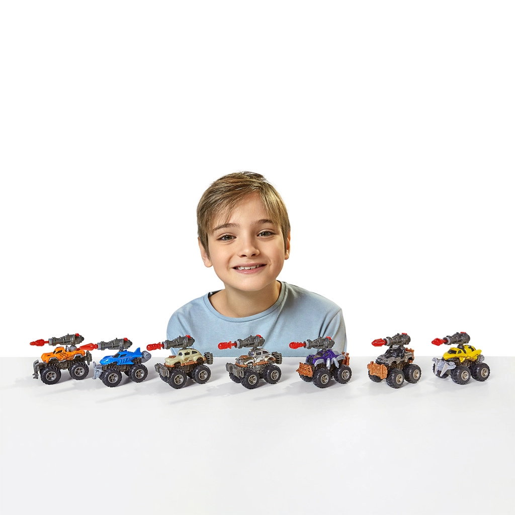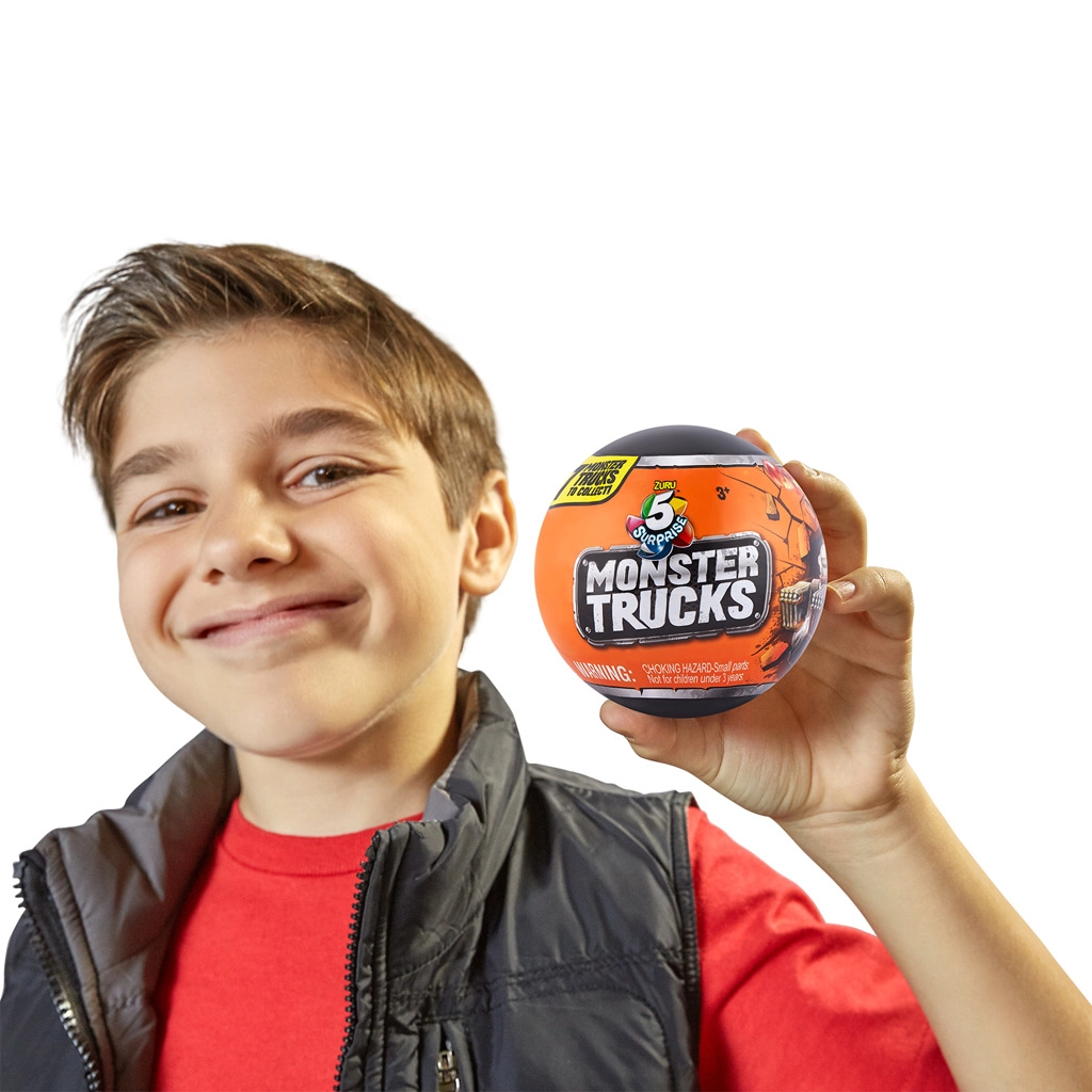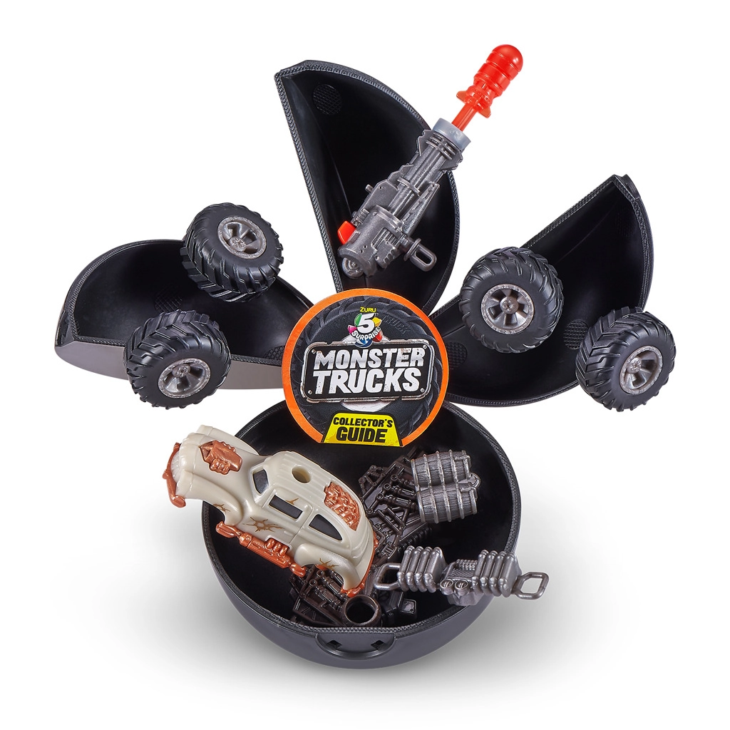 Новата серия 5 SURPRISE Monster Trucks носи вълнуващо разопаковане и страхотна екшън игра. Вътре в капсулата ще намерите части за сглобяване на мини monster truck: масивни офроуд колела, рама, брони, каросерия и изстрелващ ланчер за екшън дуели. Разопаковай, построй, състезавай се и се бий!