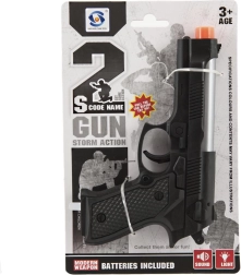 Този реалистично изглеждащ пластмасов пистолет ще зарадва всички малки фенове на екшън игрите. Благодарение на светлинните и звукови ефекти носи още повече забавление и подкрепя фантазията и творческата игра. В комплекта ще намерите всичко необходимо – 2× AG10 батерии вече са включени.
