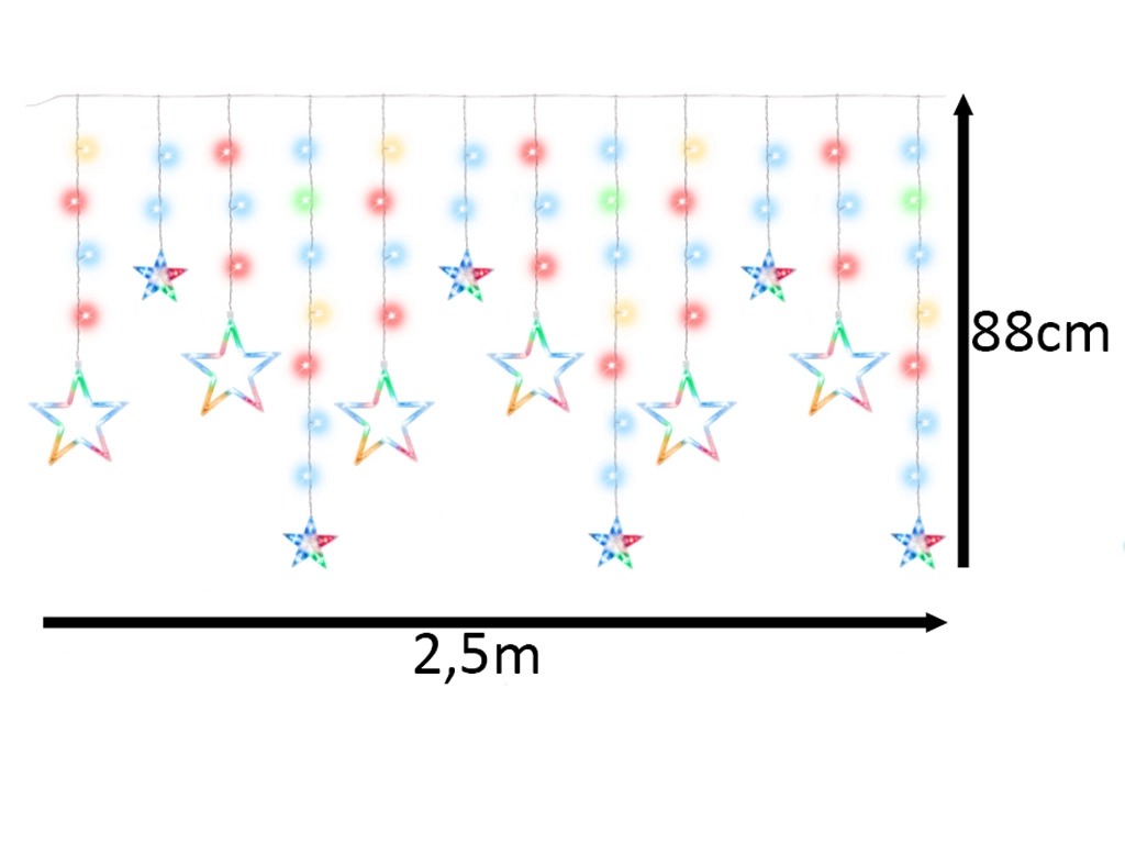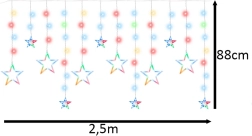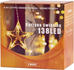 Тази декоративна LED завеса с големи и малки звезди ще озари всяко прозоречно поле или стена и ще създаде приятна атмосфера за празници и обикновени вечери. Благодарение на 138 икономични LED нежно осветява и по-големи стаи и е перфектен фон за семейни снимки.
