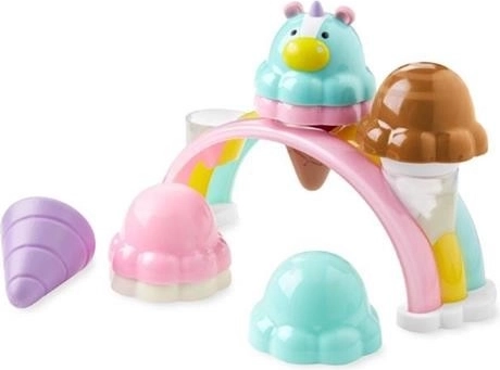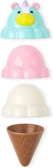Комплектът съдържа всичко за малко домашно сладоледено магазинче: 5 цветни топки, специална топка еднорог, 3 фунийки и дъгеста стойка за сервиране. Идеален за самостоятелна игра и за игра с братя, сестри или приятели.