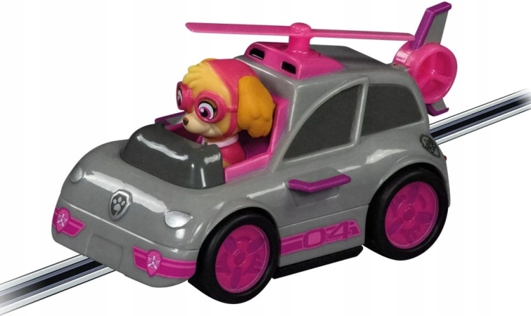 Забавна писта за най-малките с героите от сериала PAW PATROL предлага 2,4 m дълга трасe, два автомобила Chase и Skye, лесни батерийни контролери и игриви елементи, включително въртящи се перки. Идеален първи състезателен сет за деца от 3 години с качествена изработка CARRERA.
