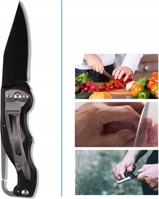 Здрав сгъваем нож с дължина около 16,5 cm се справя с приготвяне на дърва, храна и дребни ремонти на терен. Благодарение на сгъваемата конструкция се пренася безопасно и пести място в калъфа.