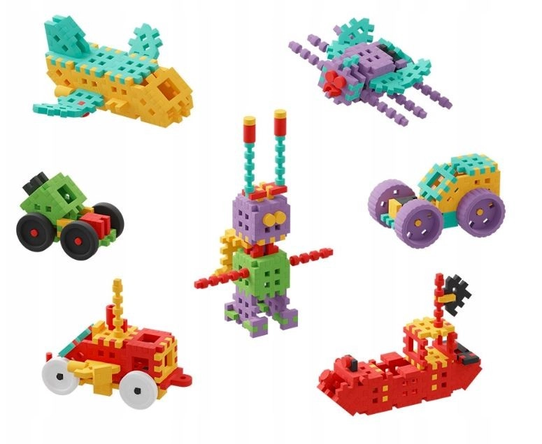 Открийте конструктора MARIOINEX MINI WAFFLE KONSTRUKTOR MAJSTER с 200 елемента в 17 различни форми. Елементите са еластични и меки, идеално пасват на детските ръце и са безопасни за деца. Подпомагат развитието на креативността и логическото мислене при строене на превозни средства, самолети, лодки и роботи.
