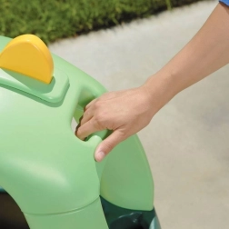 За още повече забавление и комфорт има волан с клаксон, щракащ „запалител“, отворяща се капачка на резервоара и поставки за напитки зад седалката. Предните колелца се въртят на 360°, което улеснява завиването у дома и навън. Родителите могат лесно да водят возилото благодарение на интегрираната дръжка в покрива. Производството с технология ротомолдинг осигурява дълъг живот и издръжливост.