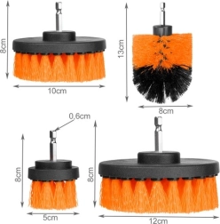 Универсален комплект четки за бормашина и акумулаторен винтоверт за бързо и ефективно почистване. Нейлоновите влакна със средна твърдост се справят с мръсотията в банята и работилницата, без да надраскват арматурата. Благодарение на различните форми и размери лесно избирате правилната четка за конкретната задача. Универсално захващане, нейлонови влакна със средна твърдост, 4 броя в комплекта, подходящи за плочки, фуги, вани и автомобилни джанти.