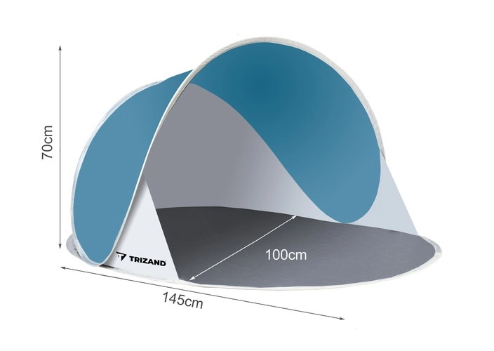 Насладете се на удобна почивка край водата без неприятно слънце и вятър. Тази полуотворена плажна палатка pop-up комбинира предимствата на чадър и параван, но заема минимално място и е значително по-удобна за използване. Сребърният UV слой (UV30) отразява слънчевите лъчи, защитава кожата и създава приятна сянка за четене и релакс. Долната част едновременно изолира от влага и пясък.