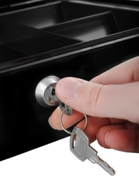 Вътрешната пластмасова вложка с отделения поддържа монетите и банкнотите подредени за по-бърза работа на касата.