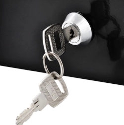 Тази голяма метална каса в елегантно черно съчетава сигурност, прегледност и издръжливост. Боядисаната стоманена обвивка и здравите вътрешни панти защитават съдържанието от повреди и неоторизиран достъп, докато ключалката с ключ (2 ключа в комплекта) гарантира надеждно заключване.