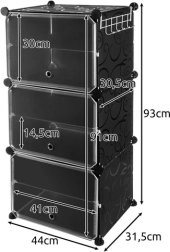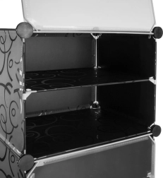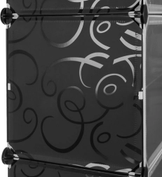 Модулният шкаф за обувки е практично решение за малки и големи домакинства. Благодарение на модулната конструкция лесно го адаптирате към пространството и вида обувки и при нужда можете да го разширите с допълнителни модули. Прозрачните вратички предпазват от прах и едновременно осигуряват бърз преглед на съдържанието, за да намирате веднага търсения чифт.