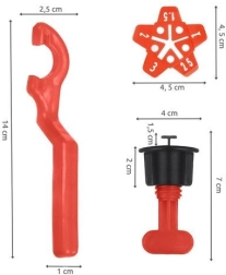 Комплектът е идеален за нивелиране на всички видове плочки. Осигурява бърза и точна работа с плочки с дебелина 3 - 16 мм.
